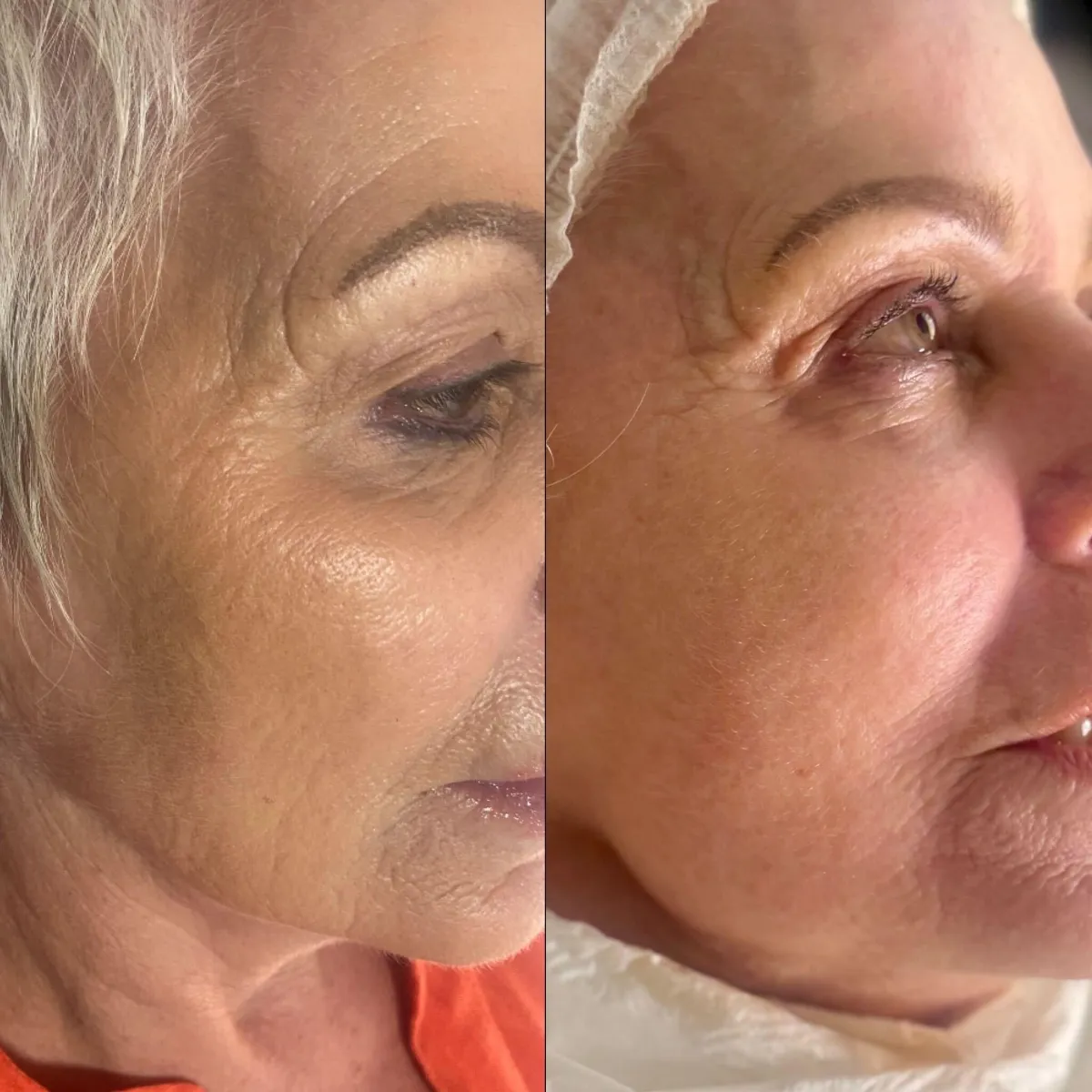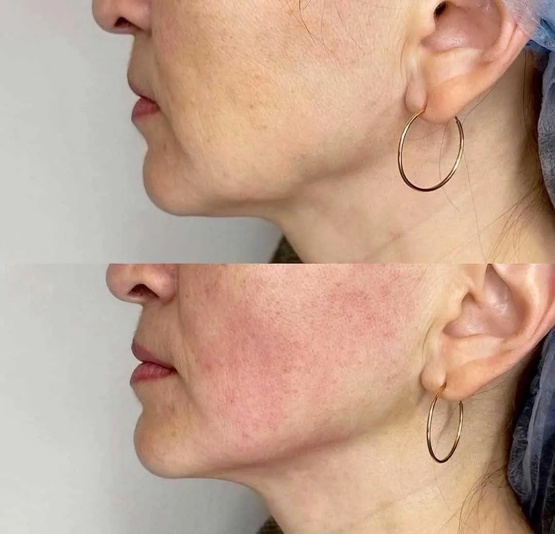 Some clients notice an immediate tightening effect due to tissue contraction. However, the most visible results develop gradually over 4 weeks as collagen regeneration continues. The skin becomes firmer, smoother, and more lifted over time.